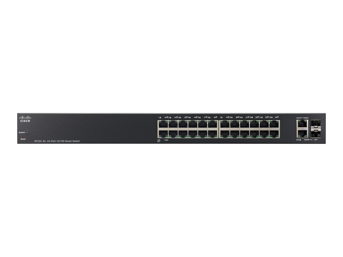 Interfaces: 24 x 100Base-TX RJ-45 ¦ 2 x 1000Base-T RJ-45 ¦ 2 x SFP