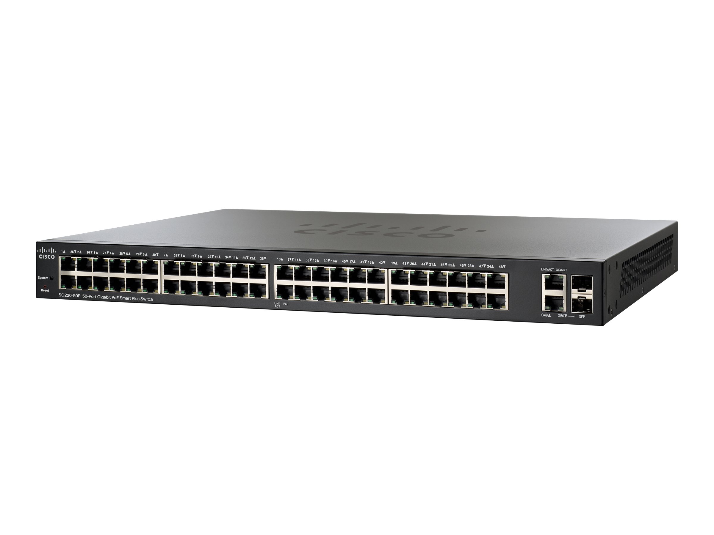 Interfaces: 48 x 1000Base-T RJ-45 PoE+ – 30 W ¦ 2 x 1000Base-T RJ-45 ¦ 2 x SFP